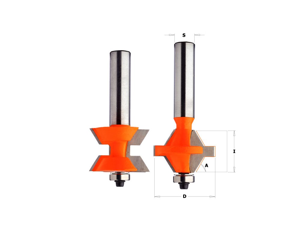 Tato sada je určena pro vyrobení atraktivní okrasné hrany na nábytkových dveřích. Použijte desku z MDF nebo překližky až do tlouštky 25,4 mm a vyrobte k ní krásnou dřevěnou hranu. Jednoduše nastavte (vycentrujte) každou frézu na střed desky a proveďte řez na desce a na hraně. Přilepte hranu na desku a pokud je nutné zarovnejte ořezávací frézou. Spoj je tvořen perem a drážkou a 60°sklonem profilu tak, aby zabezpečoval maximální plochu pro lepidlo a spoj byl dostatečně pevný.