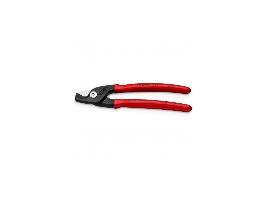 KNIPEX StepCut kabelové nůžky Snadnější střihání kabelů: inovativní krokový řez odděluje dráty po jednom a šetří energii Malé, lehké, silné: pohodlné stříhání bez poškození a při velikosti pouze 160 mm Výrazně menší úsilí: krokový řez odděluje jednotlivé dráty, stříhání je až o 40 % snazší než se standardními, stejně dlouhými nůžkami na kabel Ergonomická rukojeť: optimální cit při stříhání i u kabelů s větším průměrem >>Stříhají vícežilové měděné a hliníkové kabely s průměrem až 15 mm (50 mm²) >>Stříhají celokovové měděné a hliníkové kabely s průřezem až 5 x 4 mm² >>Řez bez poškození >>Šroubovaný kloub: přesný, snadný, odolný >>Pro zajištění bezpečnosti mají kryt, který chrání prsty před skřípnutím >>Nevhodné pro ocelový drát a natvrdo tažené měděné vodiče >>Dlouhá životnost: speciální vysokojakostní nástrojová ocel, kovaná, kalená v oleji, ostří dodatečně indukčně tvrzené >>Břity doplňkově induktivně tvrzené, tvrdost břitů asi 56 HRCDoplňkové parametry