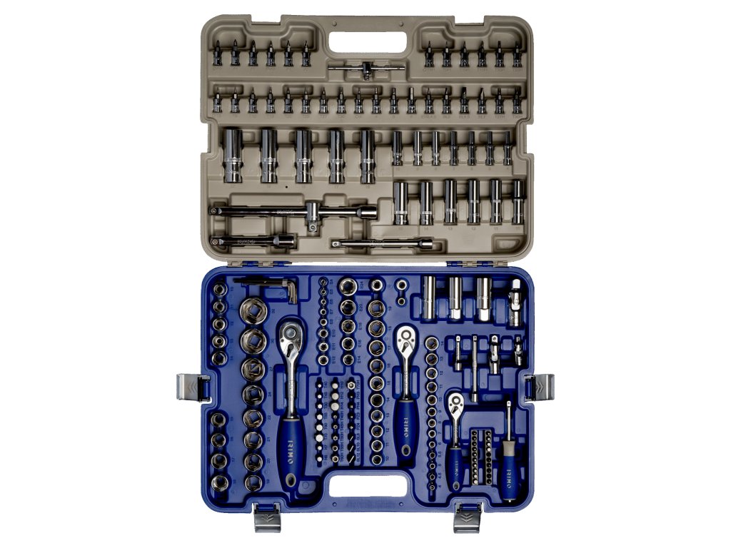 Sada 1/2 ", 3/8" a 1/4 "nástrčných klíčů a příslušenství 172 ks firmy IRIMO (129-172-4), zabalená v prvotřídním pouzdru z vysokohustotního polyethylenu, odolného proti nárazům a pádům.