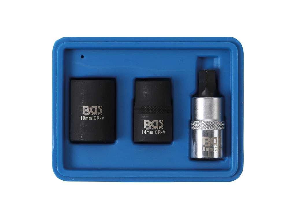 Nástrčné hlavice 1/2" 5hranné 10 ÷ 19 mm BGS101112 na brzdové třmeny kotoučových brzd. Sada 3 díly