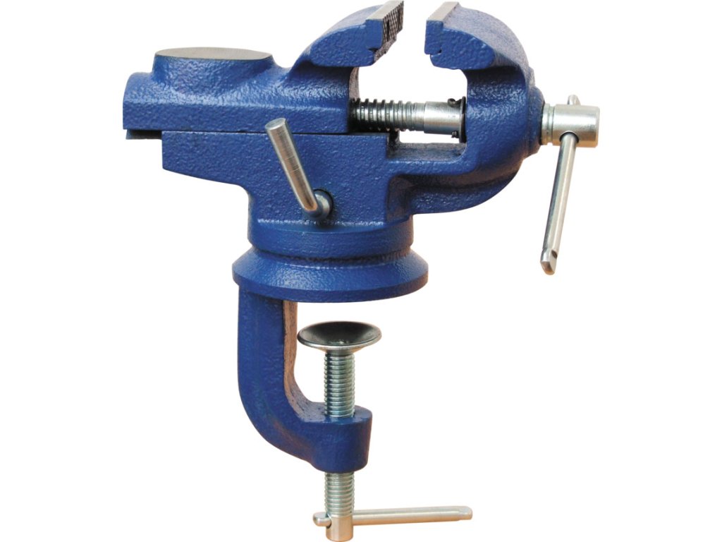 S otočnou základnou a kovadlinou pro drobné práce. Pro modeláře, domácí kutily a lehké práce v průmyslu. Lze jej připevnit na jakoukoliv vhodnou pracovní plochu. Plné litinové těleso s vodícími ocelovými kolíky a hlavním šroubem.