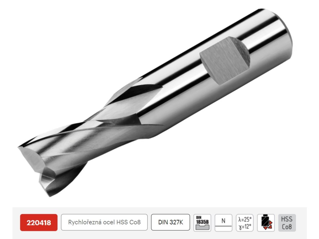 - Vyrobené z rychlořezné oceli HSS Co8 což je vysoce výkonná ocel s dobrou houževnatostí a výbornou teplotní odolností. Vhodná především pro frézování vysoce pevných materiálů, austenitických ocelí, ocelí pro tváření za tepla atd.