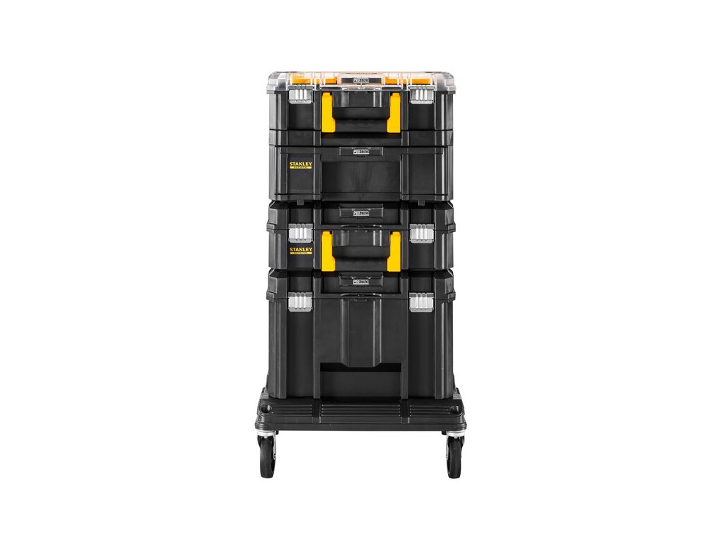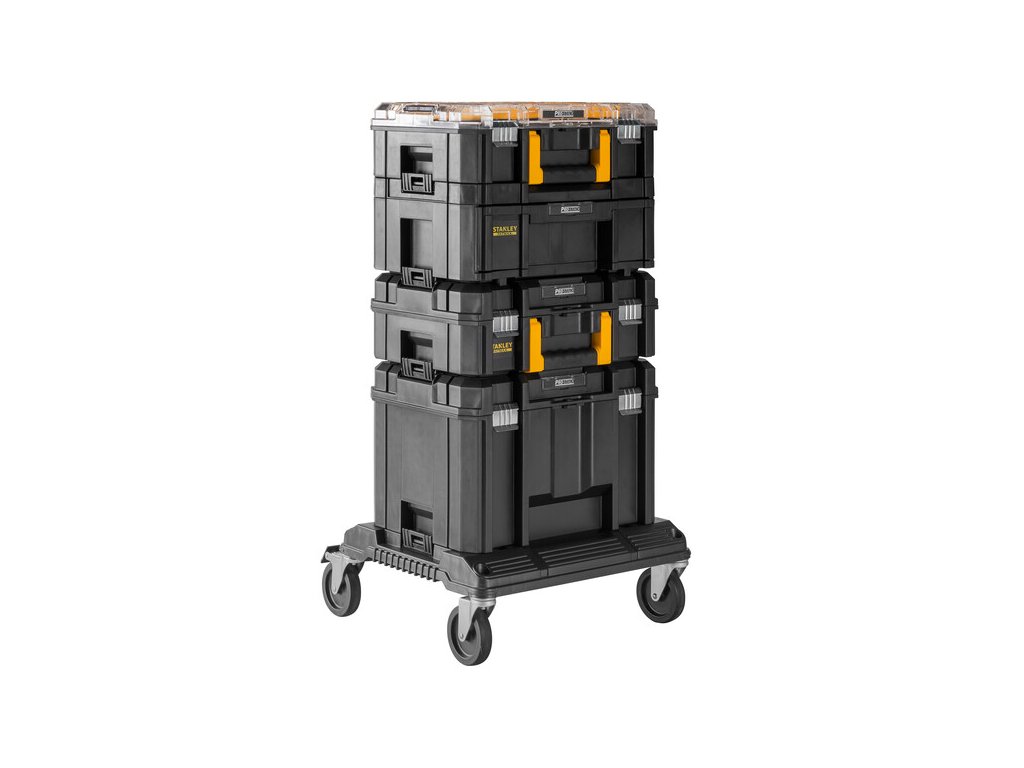 Věž TSTAK FatMax Stanley FMST1-80107 složená z podvozku a čtyř kufrů řady TSTAK.