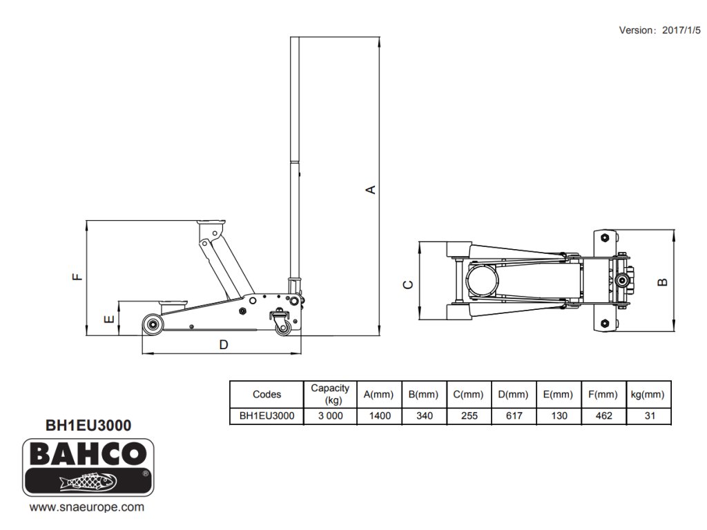 Mobilní zvedák s nosností 3T BAHCO BH1EU3000